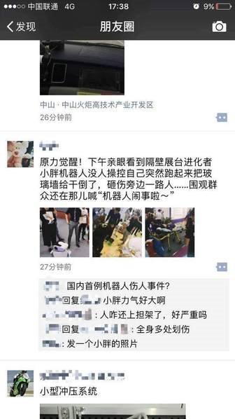 在深圳举办的第十八届中国国际高新技术成果交易会上,一台名为小胖的机器人在没有指令的前提下突然自行打砸展台玻璃,最终导致部分展台破坏,并造成一名参观者受伤送医。据资料显示,小胖是为4-12岁儿童研发,用于教育的机器人。