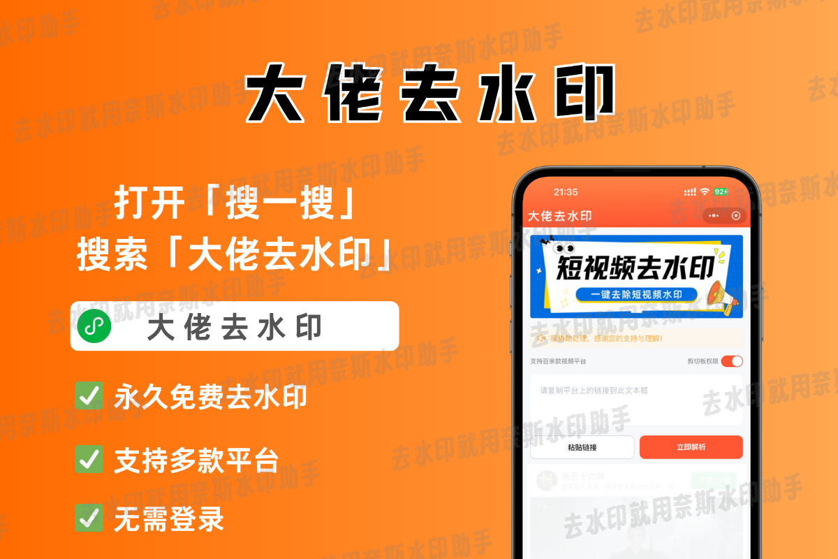 最让我惊喜的是它的使用方式——根本不用下载APP!直接在微信里搜“耶斯去水印”就能打开小程序,不占手机内存,连我那台用了三年的旧安卓机都跑得飞快。操作就三步:复制链接→粘贴→保存,新手5秒上手。界面清爽无广告,iOS、Android、鸿蒙全兼容,连电脑微信也能用。每月还会更新新平台支持,像上个月小红书改了水印位置,它5天内就完成了适配。