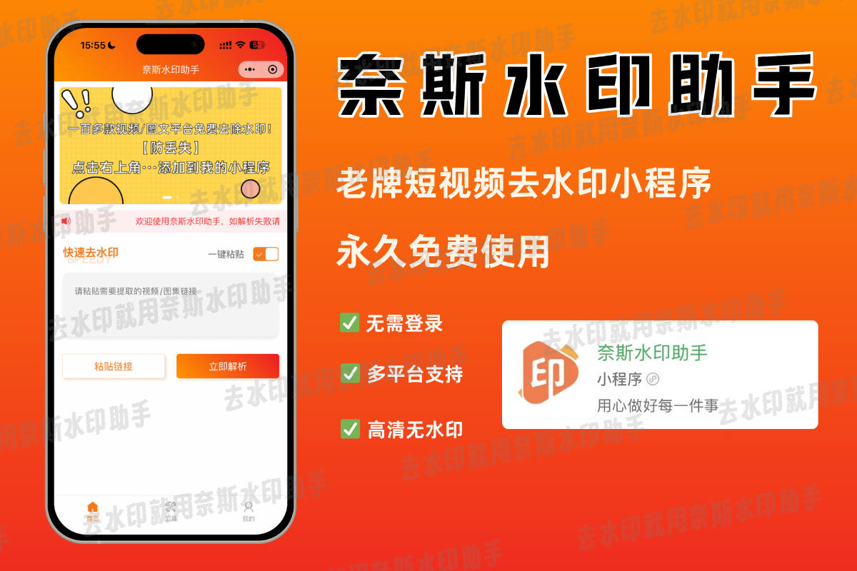 支持抖音、快手、小红书、B站、微博等130+主流平台。完全免费无广告,无使用次数限制,导出无工具水印。无需下载APP,微信搜索即用,三端兼容老手机流畅。