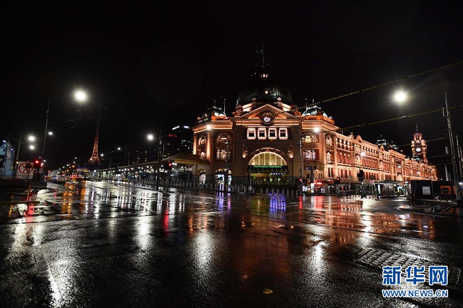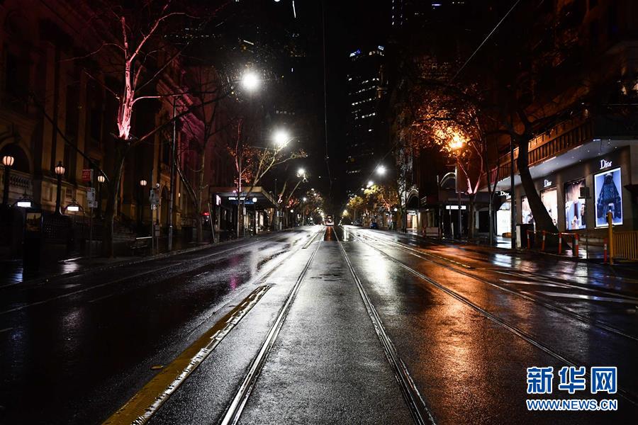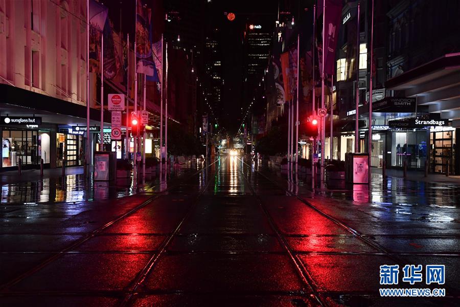 这是8月3日晚间拍摄的宵禁后的澳大利亚墨尔本城区街道。澳大利亚疫情最严重的维多利亚州2日晚宣布进入灾难状态,升级防控措施,对该州首府墨尔本实施宵禁。新华社发(白雪摄)