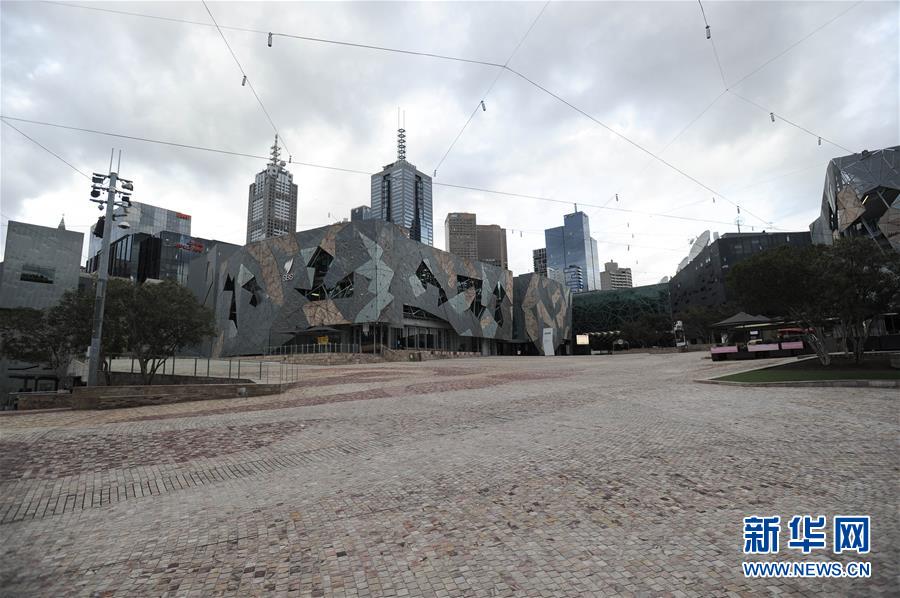 8月3日,澳大利亚墨尔本联邦广场空空荡荡。澳大利亚疫情最严重的维多利亚州2日晚宣布进入灾难状态,升级防控措施,对该州首府墨尔本实施宵禁。新华社发(白雪摄)