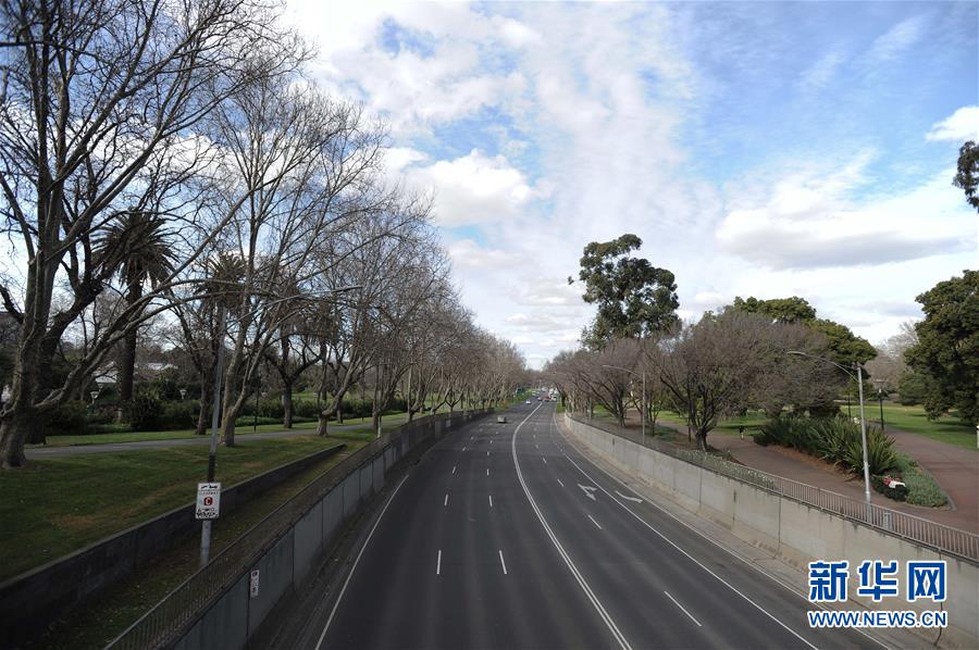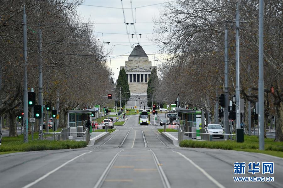 这是8月3日拍摄的澳大利亚墨尔本城区街道。澳大利亚疫情最严重的维多利亚州2日晚宣布进入灾难状态,升级防控措施,对该州首府墨尔本实施宵禁。新华社发(白雪摄)
