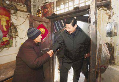 习近平来到地处深山的龙泉关镇骆驼湾村,到困难群众唐荣斌家看望