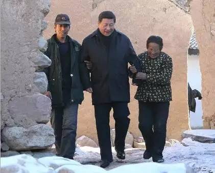 习近平来到定西市渭源县田家河乡元古堆村看望困难群众,与八旬老党员马岗亲切交谈,了解生产生活情况