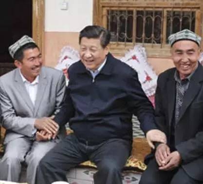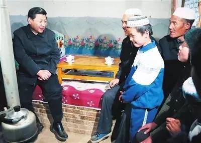 习近平在疏附县托克扎克镇阿亚格曼干村村民阿卜都克尤木·肉孜家同村民座谈