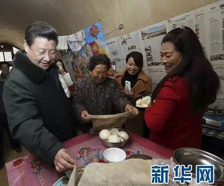 习近平走进龙泉关镇骆驼湾村困难群众唐宗秀(右)家慰问看望