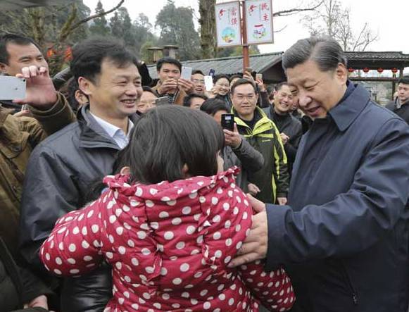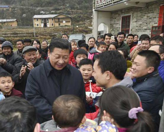 习近平来到金寨县花石乡大湾村走访村民,同当地干部群众共商脱贫攻坚大计
