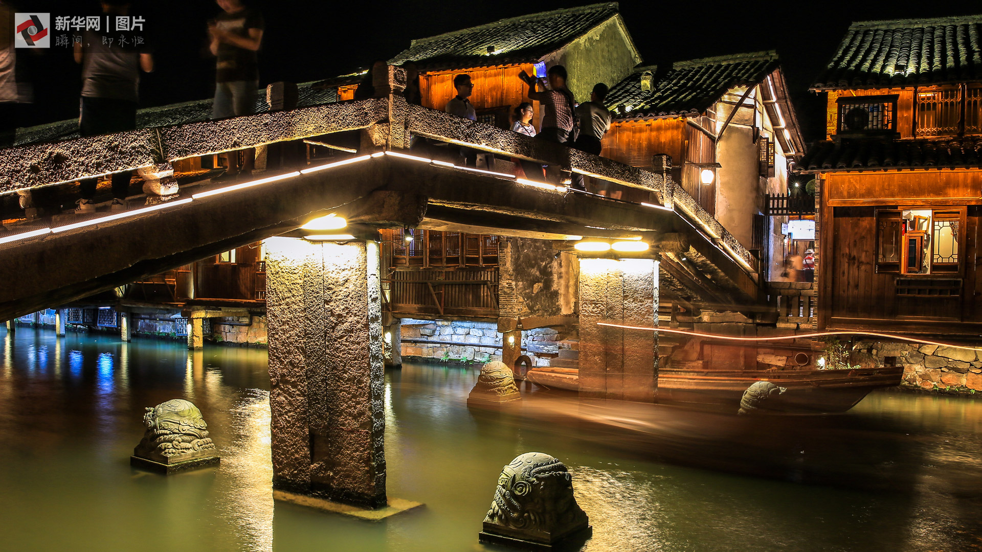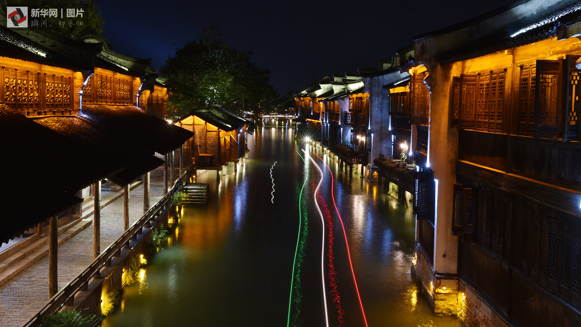 11月14日拍摄的乌镇西栅景区夜景。乌镇景区免费无线网络已实现全覆盖。 11月16日至18日,第三届世界互联网大会将在浙江乌镇举行。因为与互联网全面跨界融合,乌镇如今不只有古韵风情,互联网带来的红利正日益渗透当地百姓的生活。经过近些年的建设,乌镇的互联网品牌效应愈发彰显。新华社记者黄宗治摄