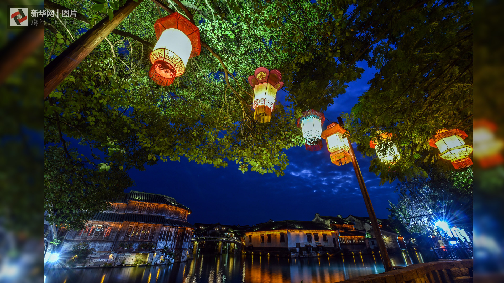 浙江桐乡市乌镇西栅景区灯火阑珊,美轮美奂。