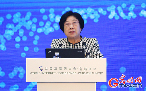 中国电子信息行业联合会常务副会长曲维枝发表演讲 光明网记者 孙佳涵/摄