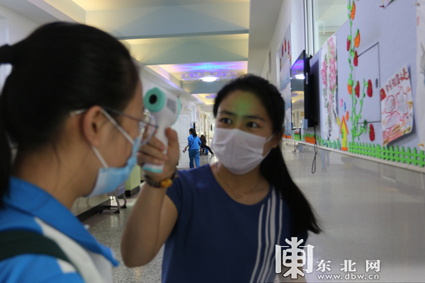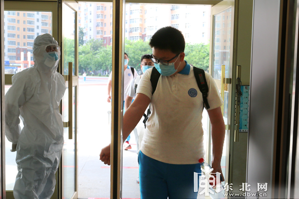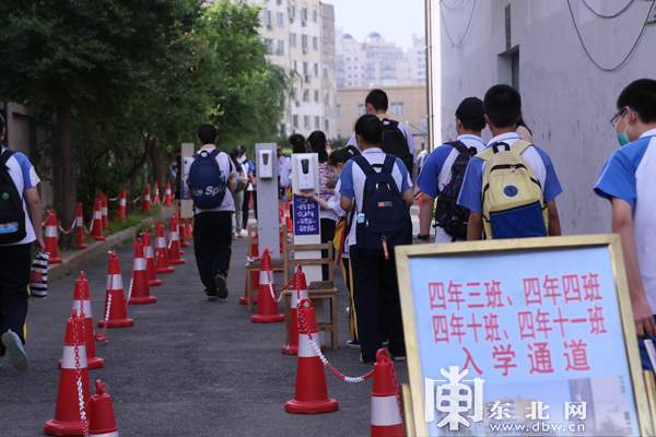 东北网6月10日讯(记者许诺 王春颖)按照哈尔滨市教育局安排,哈市初中八年级学生于10日返校复课。记者今早来到哈尔滨市风华中学、虹桥中学和124中学,看到各初中有序组织已经开学的初中毕业年级和初中八年级分批进入校园。