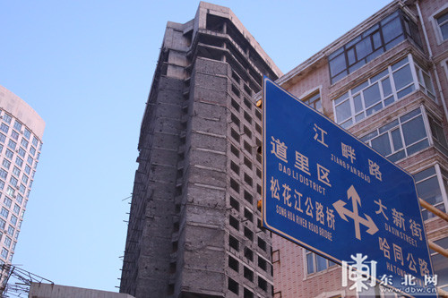 道里区新阳路与哈药路街口的高层项目已停工十余年。