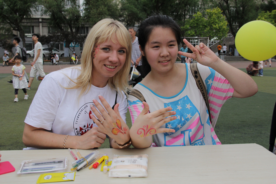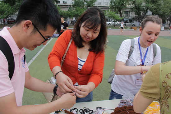 东北网6月3日讯(记者 张锐 陈志威) 3日18时,哈尔滨理工大学西区休闲广场人潮汹涌,欢声鼎沸。“创意阿尔巴特”俄罗斯文化节在这里如约举行。40余名俄罗斯人被500余名中国民众分组环绕中间,尽管语言不通,但随着一只只布偶、一幅幅彩绘、一张张编织的新鲜出炉与一场场互动游戏和文艺演出的精彩上演,所有人的脸上都洋溢着笑容,互相竖指点赞。