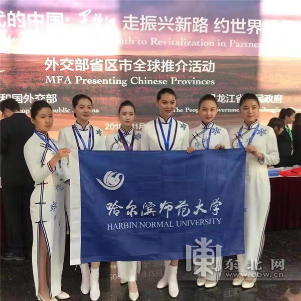 东北网11月14日讯(记者 姜姗姗)11月12日,以“新时代的中国:黑龙江走振兴新路约世界同行”为主题的外交部黑龙江全球推介活动在外交部蓝厅隆重举行。在现场,哈尔滨师范大学和哈尔滨理工大学的7名大学生成为讲解员和礼仪人员,哈尔滨师范大学的12名大学生带来龙江特色文艺表演,充分展示了我省大学生的风采。