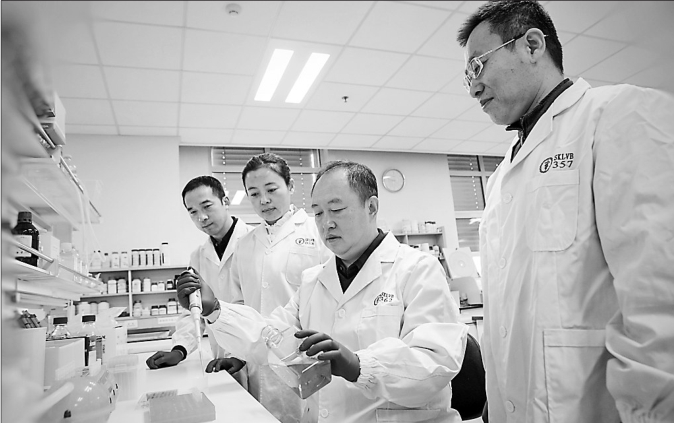 当夜幕降临,冯力的实验室灯光总是亮着,那是冯力和他的团队在讨论实验方案。千百次的失败,不同方案的探索,解决了一个又一个难题。“三联活疫苗不是单单把三个病毒混在一起那么简单。”冯力介绍。他们发明了适应传代细胞系的安全性高、免疫原性好、具有独特分子标记的弱毒株,攻克了三种猪腹泻病毒难以适应细胞、致弱过程中免疫原性减弱、强弱毒株难以区分的世界性难题。他们创建的传代细胞系替代原代细胞系的生产新工艺,突破了原代细胞培养过程中外源病毒污染难以控制的技术瓶颈,能降低生产成本约2/3,为疫苗制造与检验规程及质量标准的制定提供了新路径。