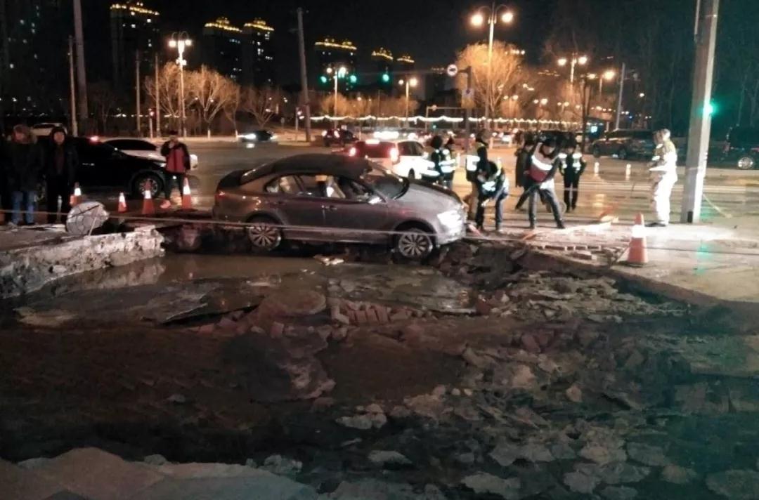 生活报1月31日讯 30日傍晚,在哈市道里景江西路与群力第一大道交口路段,路面大量涌水,发生严重塌陷,有车辆困在水坑内。事发后,哈市相关部门赶赴现场救援抢修。