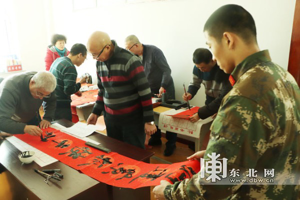 东北网1月31日讯(刘飞 记者 陈南竹)记者从武警牡丹江支队获悉,1月29日下午,牡丹江市爱民区通乡社区百余名拥军市民来到武警牡丹江支队为官兵包年夜饺子、写春联,为驻地官兵送去了新春佳节的美好祝福。