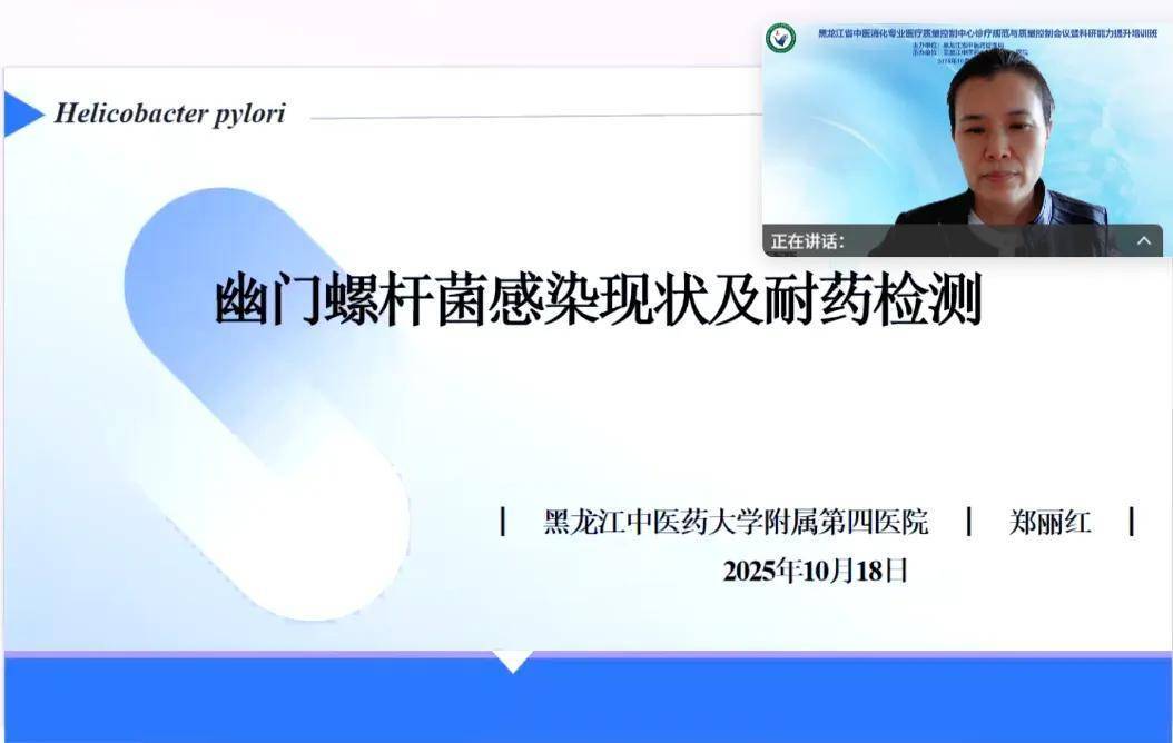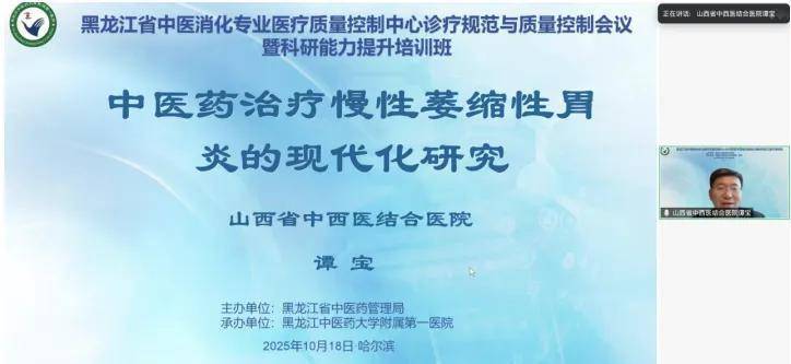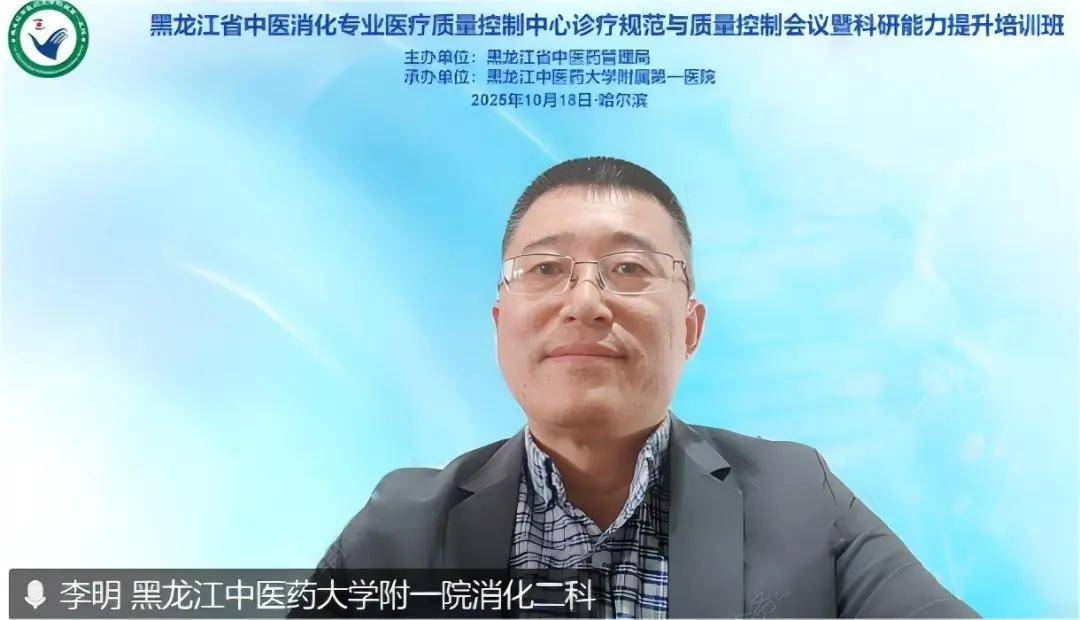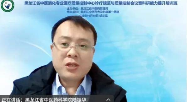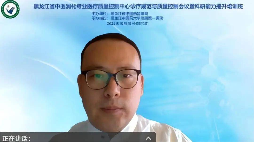 10月18日,由黑龙江中医药大学附属第一医院消化二科承办的黑龙江省中医消化专业医疗质量控制中心诊疗规范与质量控制会议暨科研能力提升培训班以线上形式顺利开展,旨在进一步规范全省中医消化专业的诊疗行为,提升医疗服务质量与同质化水平,推动学科内涵建设与高质量发展。黑龙江省中医药管理局医政处三级科员谢新敏,黑龙江中医药大学附属第一医院副院长李竹英,消化二科主任、黑龙江省中医消化专业医疗质量控制中心主任王海强参加会议并讲话,来自全省各级医疗机构的200余位相关专业人员参会。