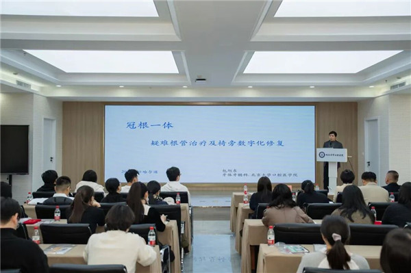 在随后举行的学术会议环节,北京大学口腔医学院牙体牙髓科包旭东教授作了题为《冠根一体化——疑难根管治疗及椅旁数字化修复》的专题学术讲座,深入讲解了显微根管治疗、疑难病例处理、椅旁数字化等前沿技术与临床要点。与会委员积极参与讨论,现场学术氛围浓厚。