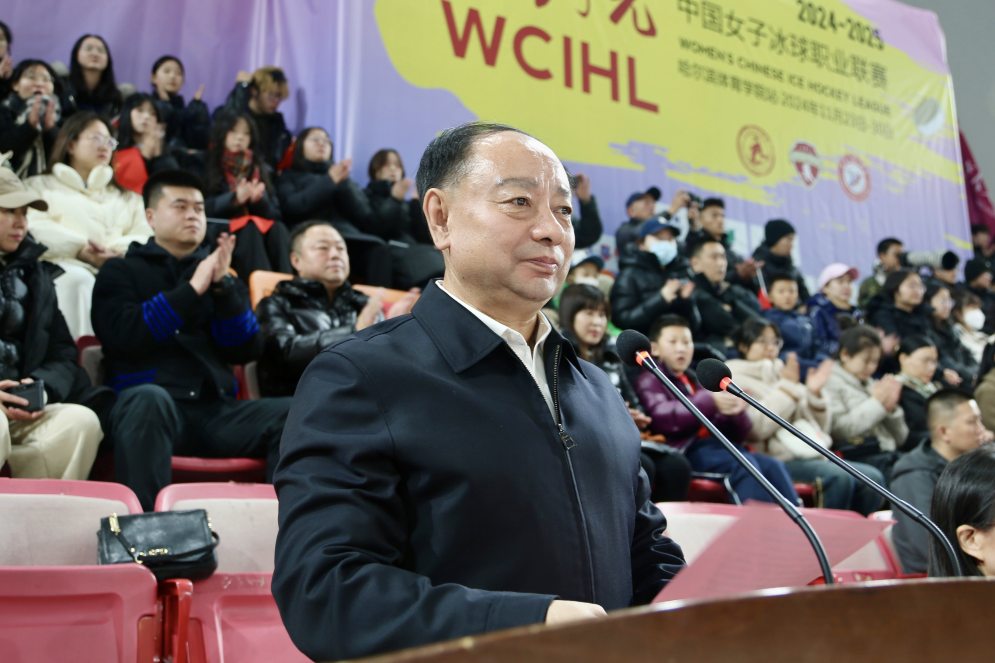 中国冰球协会主席王玄宣布2024-2025赛季中国女子冰球职业联赛(哈尔滨体育学院站)开赛。