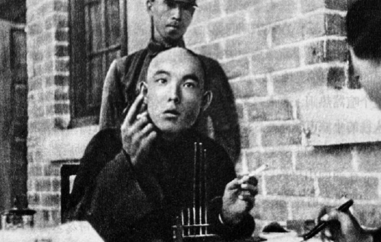 1938年11月,在长沙审问日军俘虏汤田良仁
