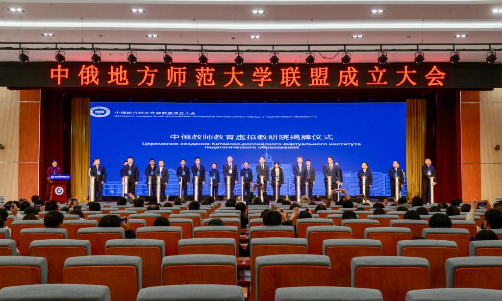 大会上,分别进行中俄地方师范大学联盟揭牌,中俄教师教育虚拟研究院揭牌,中俄乡村教育研究团队院士工作室揭牌。