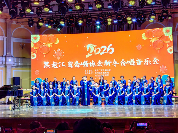 本场音乐会汇聚了五支省内优秀合唱团体,共同呈现《娄山关》《天安门太阳的广场》等16首经典曲目。哈尔滨教师合唱团与未来女声合唱团等相继登台,以红色经典、民族韵律、流行改编等多风格演绎,赢得现场阵阵掌声。音乐会在全体演员与观众共同高唱《歌唱祖国》的激昂歌声中圆满落幕,表达了对2026年的美好展望。