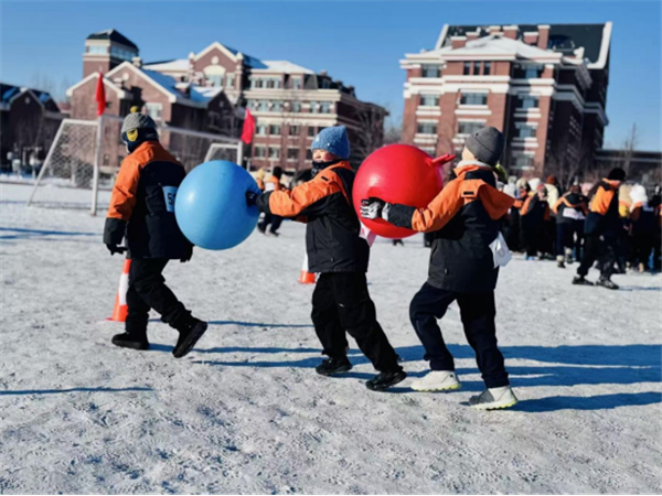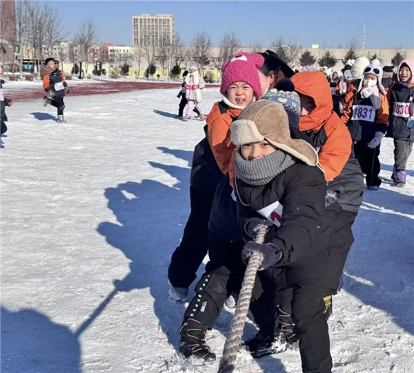 雪地列车、拉雪圈、腰旗橄榄球等项目各具特色,让不同年龄段的学生都能在适合自己的赛道上挑战自我、收获成长。