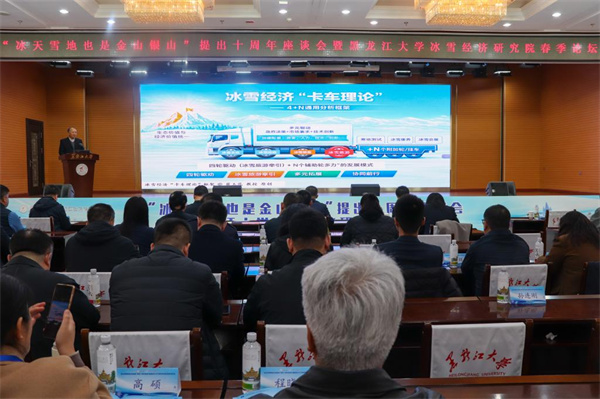 黑龙江大学冰雪经济研究院执行院长、首席专家崔玉范以《从重要论述到龙江答卷》为题作主旨报告,深入阐释了“冰天雪地也是金山银山”的理念内涵,系统总结了黑龙江践行理念的实践探索与发展问题,简要介绍了黑龙江大学在冰雪经济领域的研究基础与成果,并发布了“冰雪文化四层内涵”理论和冰雪经济“卡车理论”。