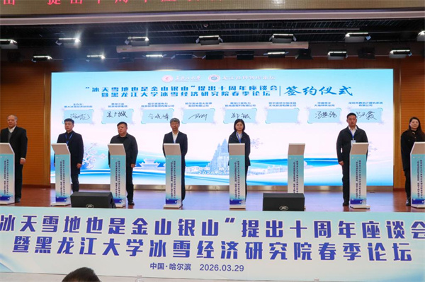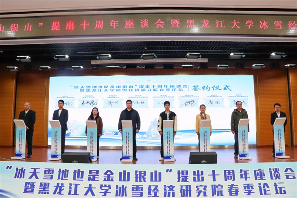会上,黑龙江大学冰雪经济研究院与14家企业正式签署战略合作协议。