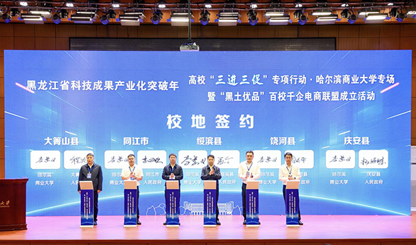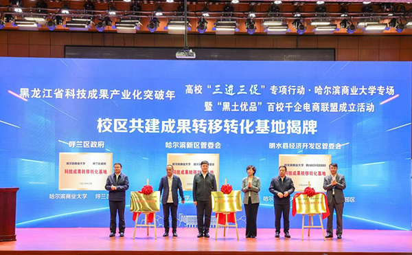 在全省上下深入贯彻落实《黑龙江省科技成果产业化突破年行动方案》之际,哈尔滨商业大学全面贯彻落实省委、省政府有关部署要求,举办“三进三促”系列活动,加速高校科技成果向现实生产力转化。近年来,哈尔滨商业大学始终坚持“优势互补、突出重点、互相促进、共同发展”的原则,锚定国家所需、龙江所要、学校所能和未来所向,在科学研究、成果转化、社会服务等方面与省内政府部门、企业开展深度合作,构建信息共通、资源共建、人才共育、成果共享的一体化发展格局,推动创新链、产业链、资金链、人才链深度融合,加速布局科技成果产业化突破,持续在科技攻关、成果转化、人才培养等领域为龙江高质量发展、可持续振兴提供坚实有力的智力支撑。