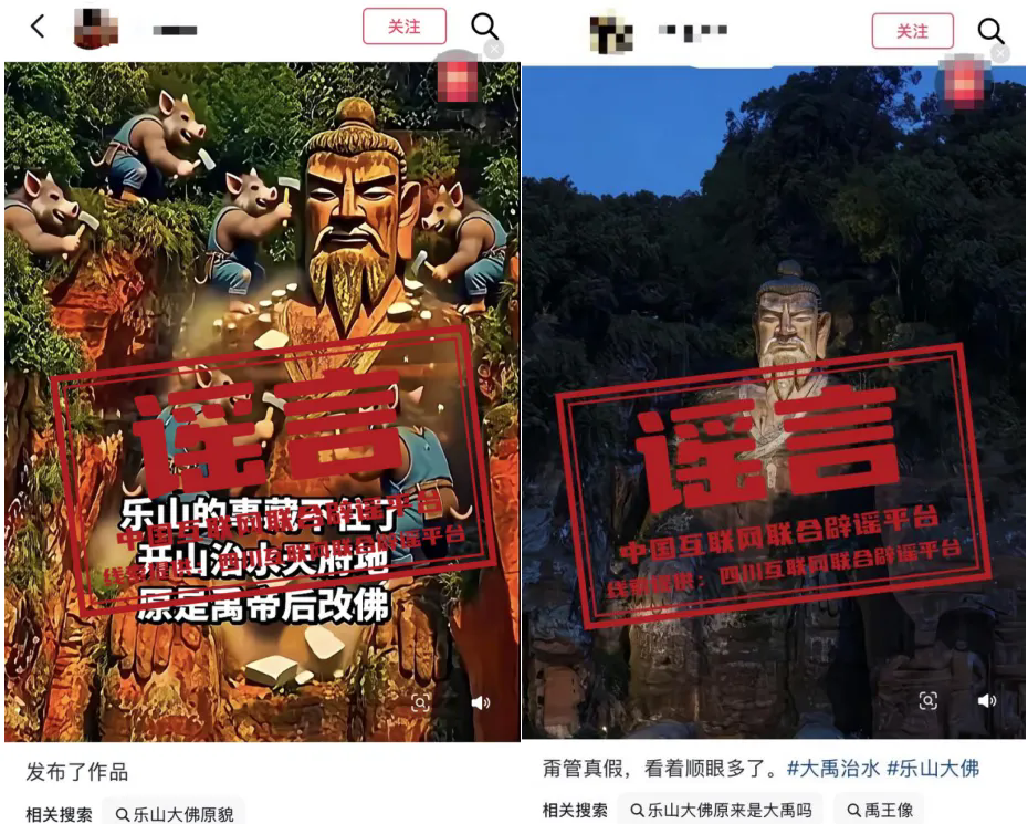 辟 谣 “乐山大佛是大禹雕像改建”系AI动画生成