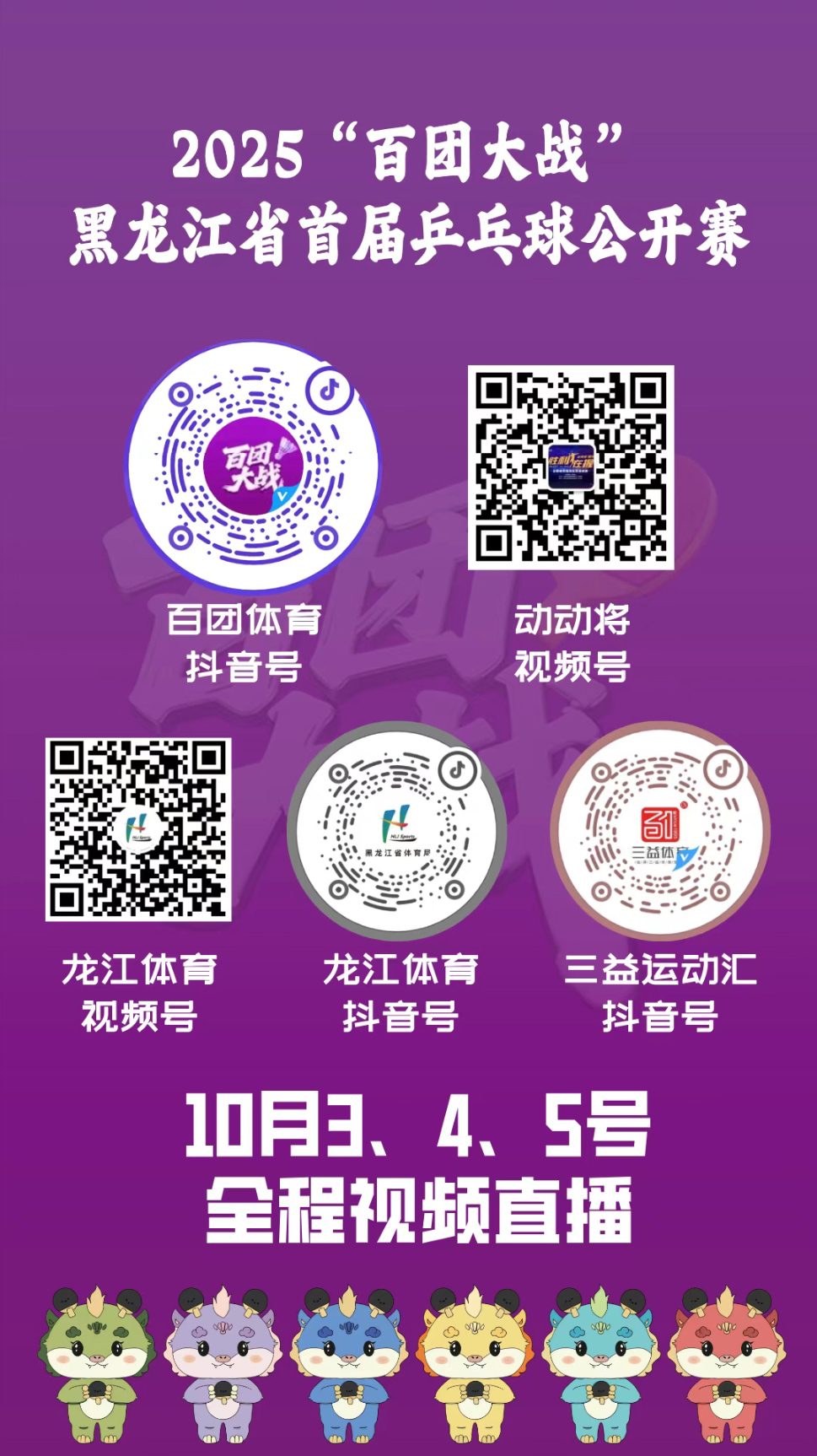 首届赛事的传奇已然开卷,百团争锋的号角响彻云霄!2025“百团大战”黑龙江省首届乒乓球公开赛赛事全程共计3天,比赛全程会在不同场地开启视频直播+照片直播,敬请关注。
