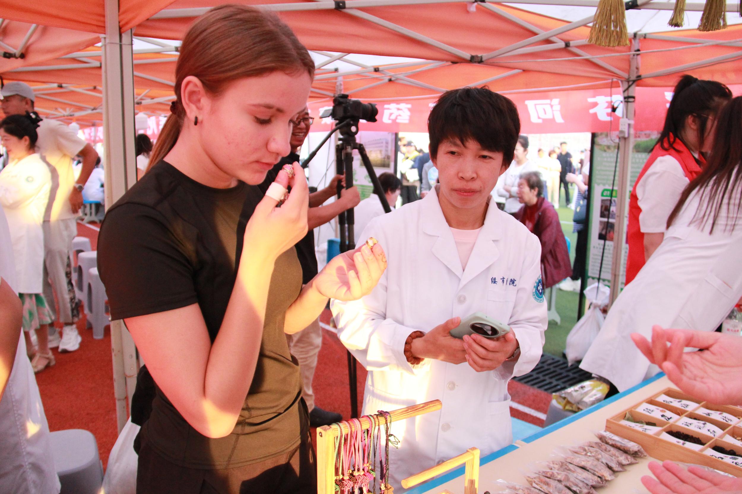 多地联动:特色活动构筑跨境康养服务矩阵绥芬河市体育馆内热闹非凡,中医药经典医籍展、中药材标本展、中医诊疗器具展等特色摊位前人头攒动,市民亲手制作中药香囊,在中药茶饮品尝区了解养生功效,通过“看、听、做、尝”的沉浸式体验,让中医药文化深入人心。