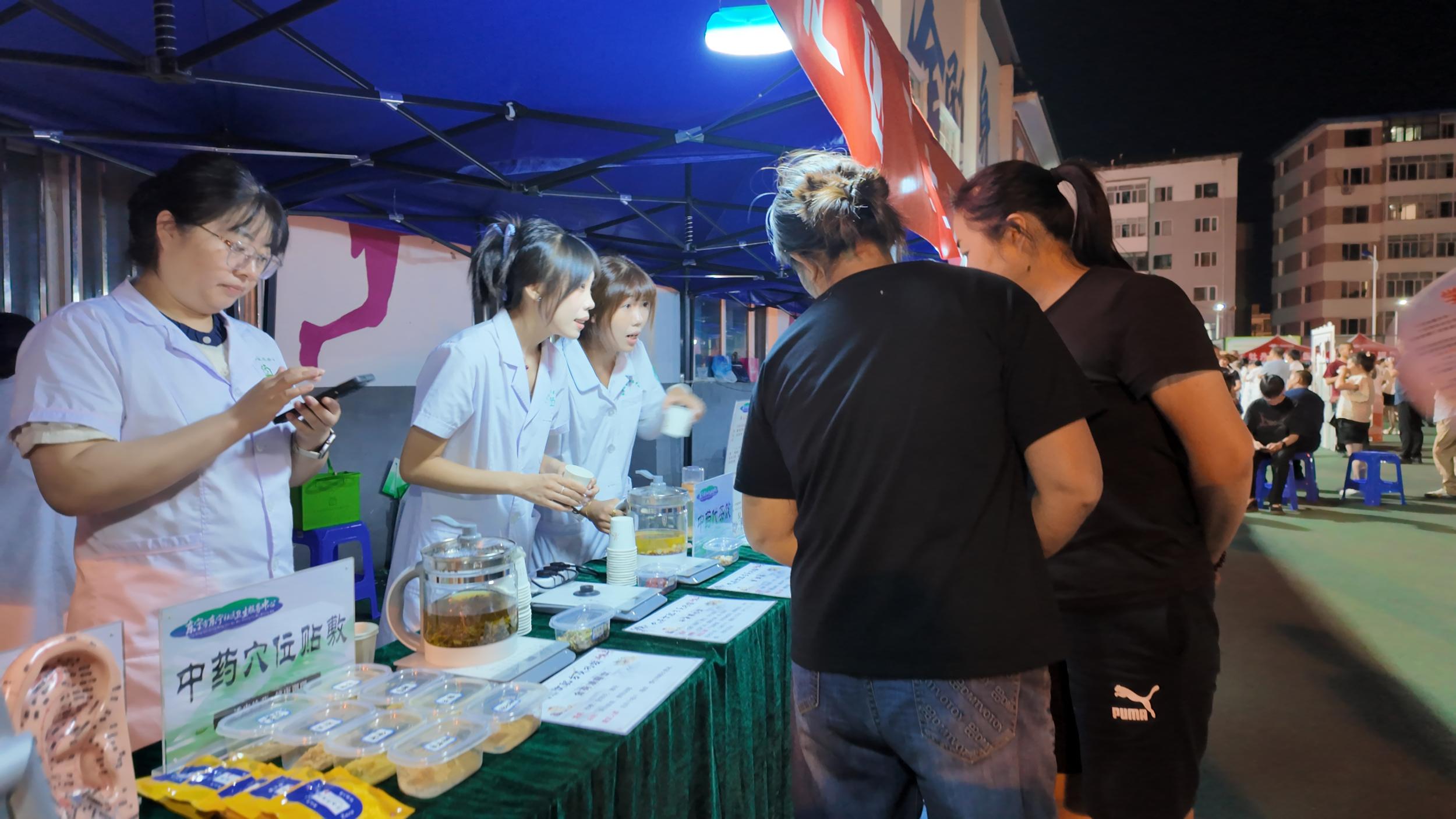 记者在东宁市康养夜市,体验到了“多元化服务模式”的便捷服务。夜市划分健康义诊区、预防科普区、中医问诊区、中药茶饮品鉴区、中医适宜技术体验区五大功能区。在中医适宜技术体验区,东宁市妇幼保健院推出的中医美容、火龙罐、推拿按摩等项目人气爆棚。中药茶饮品鉴区,医务人员现场冲泡清热降火、健脾祛湿等不同功效的养生茶饮,“这款祛湿茶里加了茯苓和炒薏米,喝完很舒服。”贴心讲解让市民在品鉴中学习养生知识。