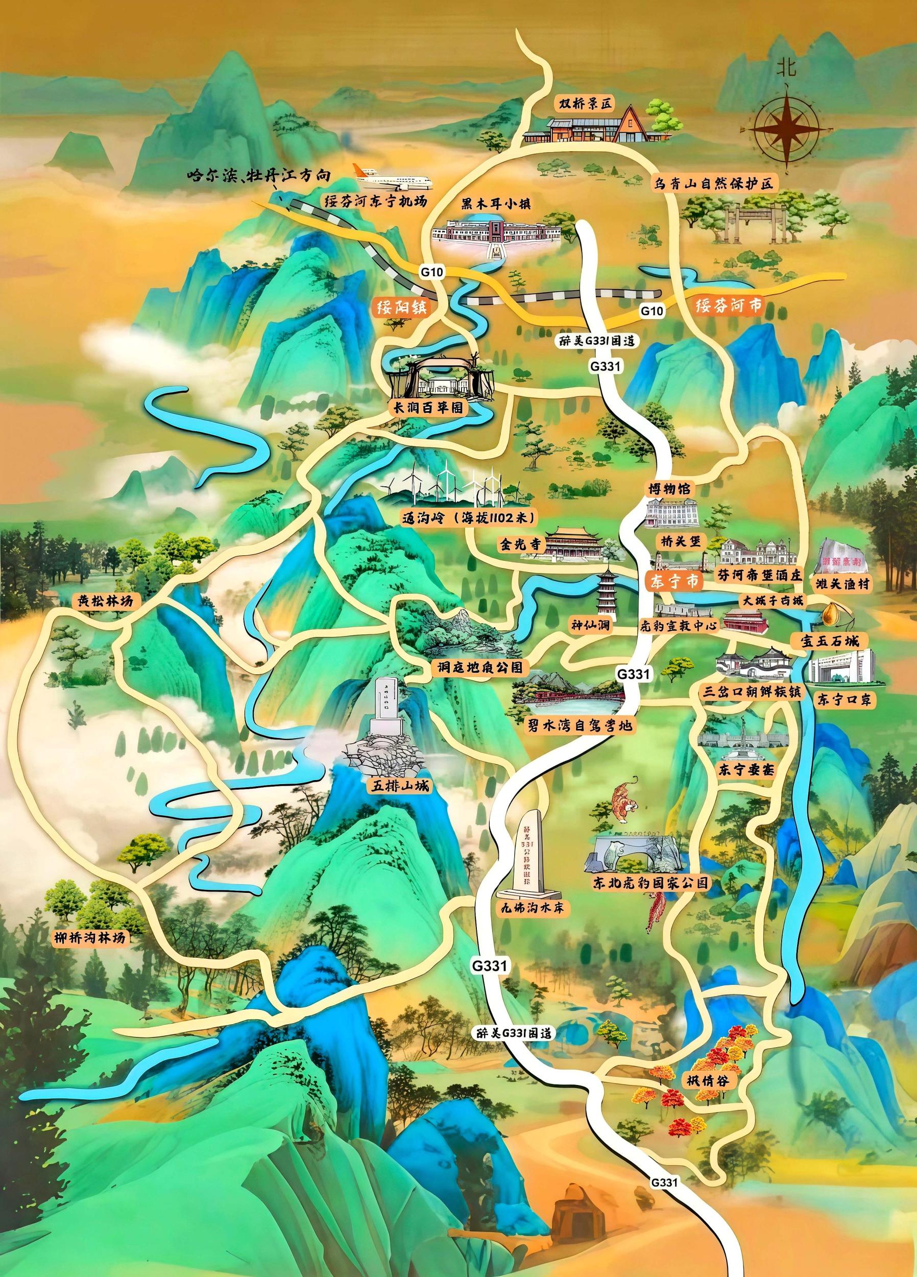 牡丹江东宁市位于黑龙江省的东南端,是国道G331进入黑龙江省的第一站,是黑龙江省唯一具有海洋性气候的城市,也是全省花开最早的地方,景色怡人,被誉为塞北小江南。这里拥有国家一类陆路口岸,是我国距离俄远东地区符拉迪沃斯托克(海参崴)最近的口岸城市(153公里)。市域面积7139平方公里,域内有绥芬河国家级湿地公园,洞庭峡谷省级地质公园,鸟青山省级自然保护区;现有国家级文物保护单位3处,分别为侵华日军东宁要塞群、五排山城、团结文化遗址。全市森林覆盖率85.2%,冬无严寒,夏无酷暑,物产富饶。