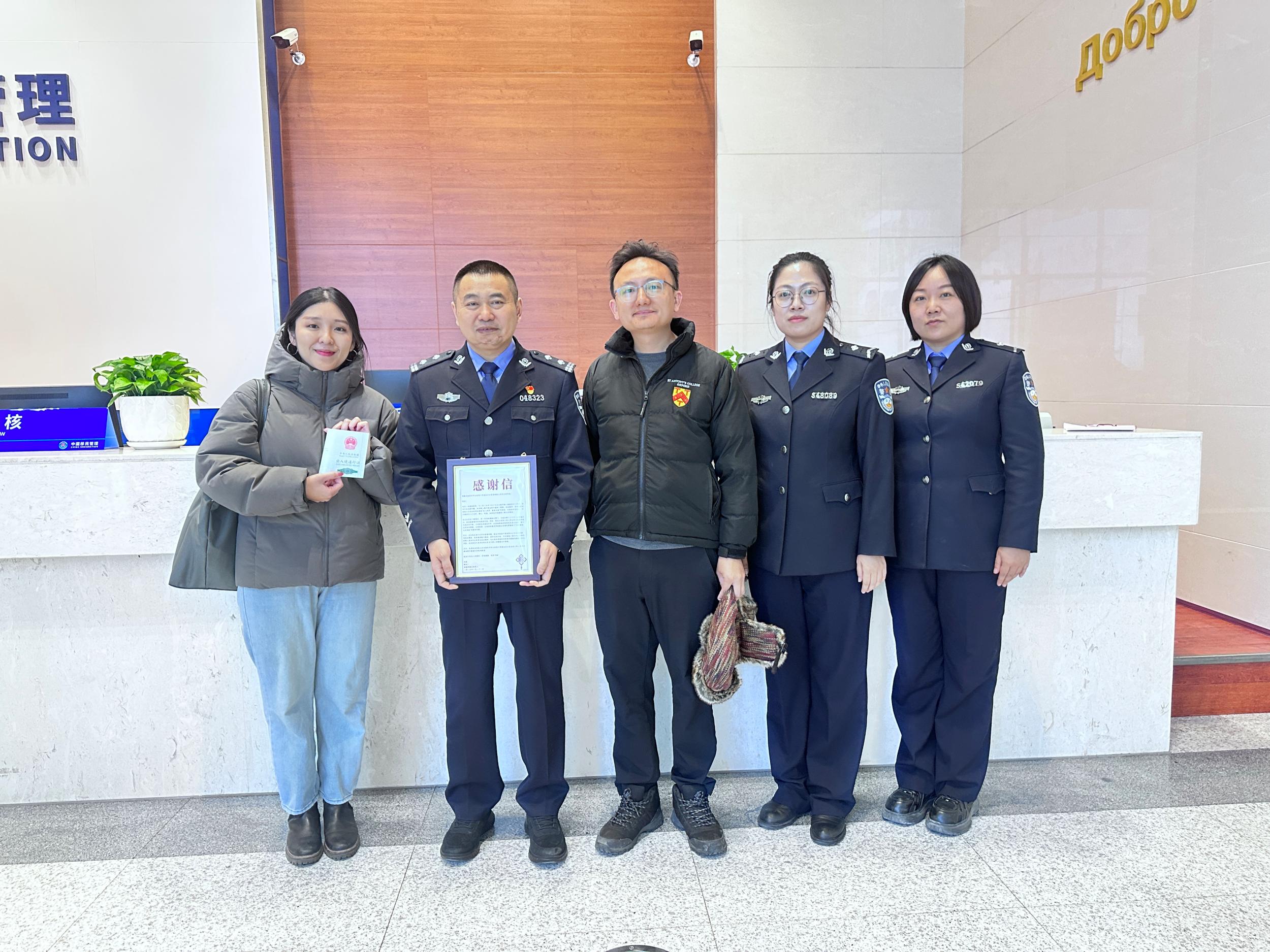 由于时间紧迫,姜国栋让民警郭千萌当天乘火车前往哈尔滨对接证件办理相关事宜。在省公安厅出入境管理部门的大力支持下,21日,郭千萌带着刚刚办理好的证件,返回绥芬河口岸。拿到证件吴女士非常高兴,并将一封精心制作的感谢信交到姜国栋手中。