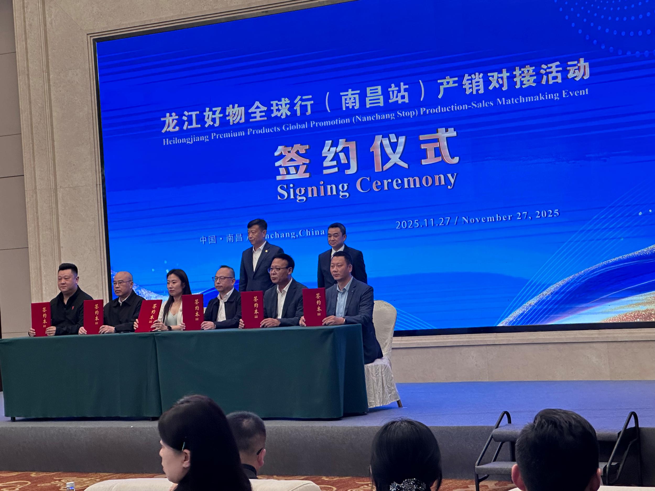 而企业间的精准签约,则让产销对接落地见效。黑龙江天锦食用菌有限公司与江西企务通供应链管理有限公司现场签署《有机山珍购销合作协议》。“我们将依托福利采购、食堂供应、商超入驻等核心渠道,把龙江优质有机山珍推向江西市场。龙江产品品质优渥,且有完善的售后保障,这为我们未来长期合作奠定了坚实基础。”江西企务通供应链管理有限公司总经理熊凤平说。