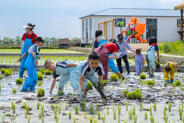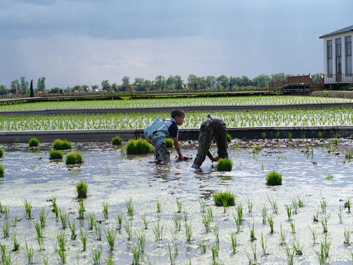 春末的风裹挟着黑土地的温润,漫过乔府大院的田埂。我们不再是旁观者,而是亲手播撒希望的耕耘者。接过老师递来的稻种,指尖触到粒粒饱满的金黄,才懂“春种一粒粟”不是课本上的诗句,而是大地与耕耘者的温柔约定。挽裤脚踏入育苗田,湿润泥土漫过脚踝,我们学着农民伯伯的模样匀撒稻种、轻覆薄土。研学老师说,五常大米香飘四海,是黑土地的厚赠,更是生态与科技的双重守护——小青蛙、小鸭子担当“田园卫士”,它们的粪便化作天然养分,全链条科技则让自然馈赠完美留存。蹲下身,看金黄颗粒落进泥土,仿佛无数绿色星子,正攒劲冲破土层,赴一场与盛夏的约会。
