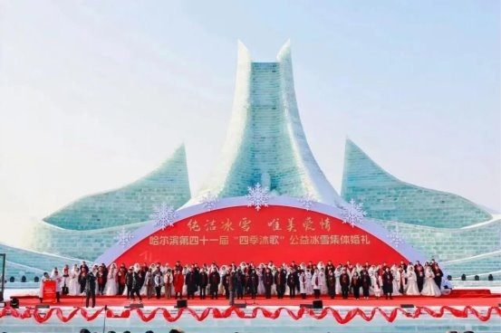 与此同时,第42届公益冰雪集体婚礼报名人数已突破14000对,征集平台访问量破5000万,全网传播量超2亿——这场由四季沐歌冠名支持的活动,正与冰雪大世界的宏大工程交相辉映,共同构成2025年最富温度的冬日图景。