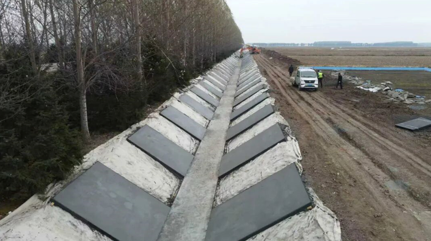 第三管理区副主任高峰介绍道:“此次工程采用混凝土预制板对田间主沟渠进行衬砌,预计完成6100米沟渠改造。衬砌后的沟渠不仅减少水资源损耗,使灌溉效率提升20%以上,还降低了沟渠清淤管护成本,为机械化耕作创造便利条件。”