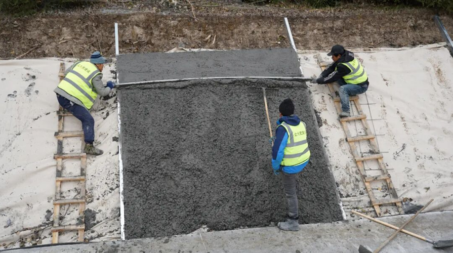 施工人员正在对沟渠进行衬砌改造。吴佳蔓摄