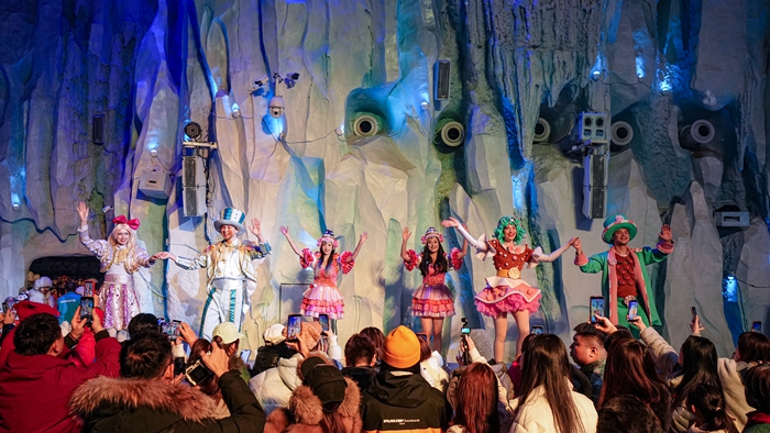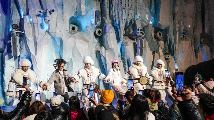 为让游客沉浸式感受新春氛围,极地公园融合传统马年元素,精心打造多处新春主题互动点位。火爆全网的冰雪景观“冬日童话镇”换上新年盛装,满目“新年红”装饰将新春氛围拉满,成为游客定格新春美好瞬间的绝佳去处。同时,一系列趣味春节互动活动接连上线,财神现场派发红包送福、疯狂雪场打雪仗大赛、特制“冰剑”免费赠送等活动轮番开展,让游客在体验极地冰雪乐趣的同时,感受地道的东北新春年味,在欢声笑语中传递暖心新春祝福。