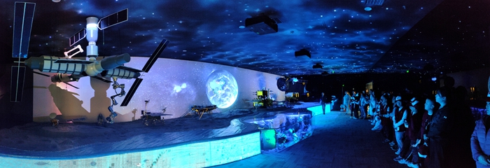 步入航天厅,灯光渐暗,巨型环幕亮起。随着倒计时归零,一枚“火箭”拔地而起,轰鸣声震彻展厅——视频短片将中国航天与水下机器人的辉煌成就浓缩于方寸之间。小记者们屏息凝神,见证“嫦娥”揽月、“天问”探火、“奋斗者”号万米深潜的震撼瞬间。