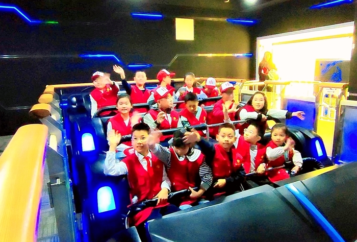 最令人屏息的体验在飞行影院上演。无需佩戴设备,小记者们便随画面“腾空而起”,以雄鹰视角穿越松花江畔,掠过索菲亚教堂的穹顶,俯瞰太阳岛雪博会盛景。身临其境的震撼引得惊呼连连:“太美了!原来家乡这么酷!”