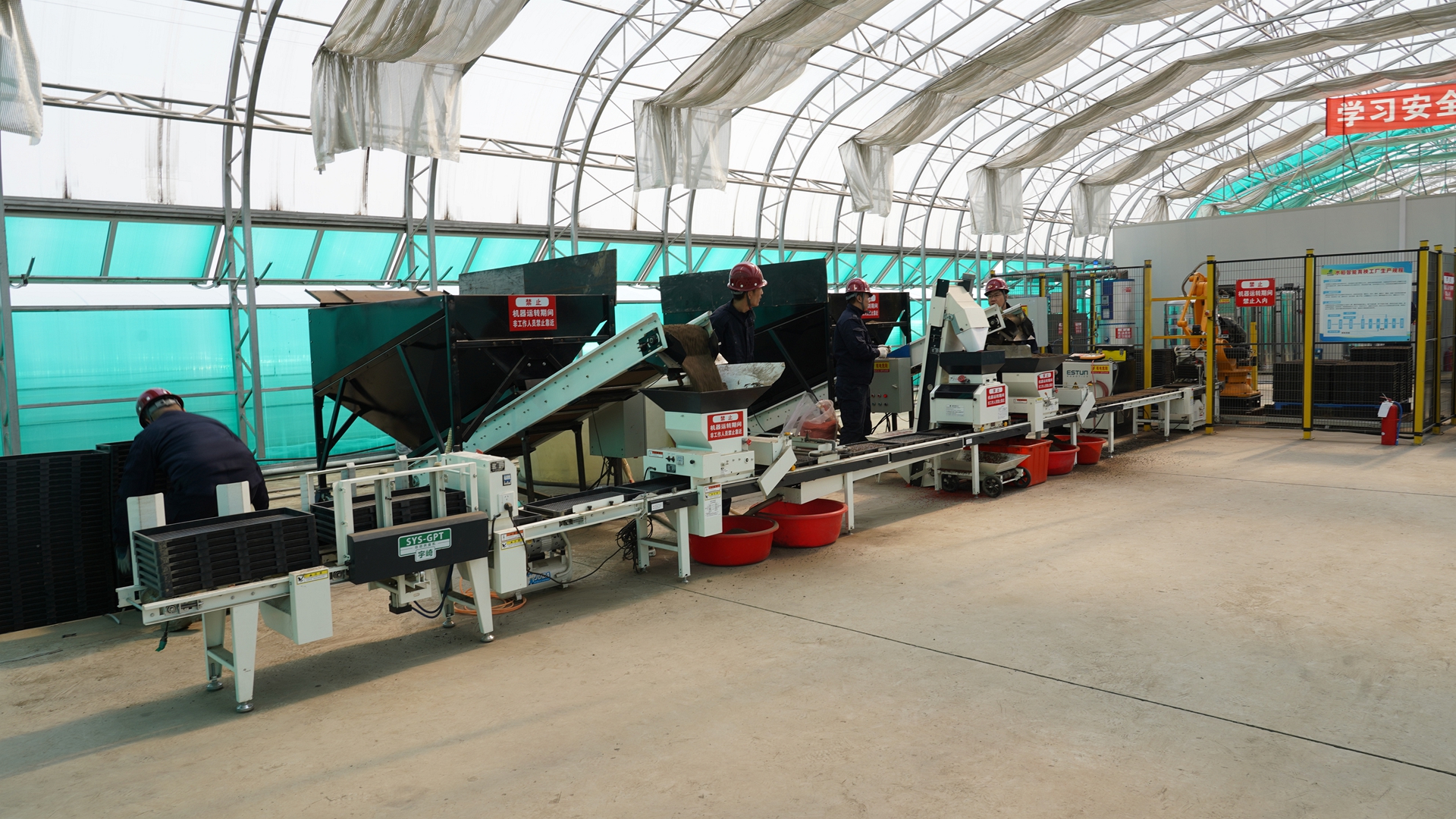 同时,技术人员全程驻守、精准指导,严格把控播种密度、暗室育秧环境等每一个关键环节,确保育秧流程规范、标准落地。工人们分工明确、配合默契,熟练完成秧盘搬运、整齐码放、集中转运等各项工作,整个生产流程忙而不乱、井然有序,全力加快育秧进度。