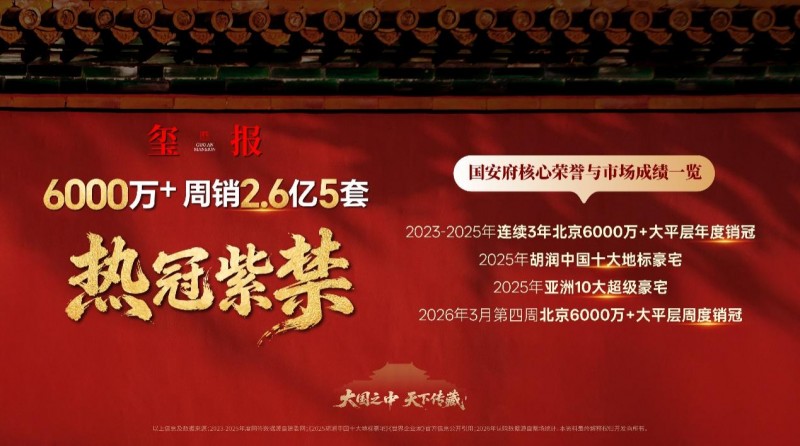 2026年开年,北京楼市最热的关键词非“大阳春”莫属。核心一二线城市在宽松政策托底下,沉寂两年的顶豪市场率先回暖。克而瑞数据显示,2026年开年全国顶豪细分赛道成交同比涨幅达38%。作为全国楼市的风向标,北京顶豪复苏势头尤其亮眼:政策松绑后高端盘带看量涨八成,核心区6000万+大平层成交量同比上涨近五成。而这波行情中最出圈的项目,当属西二环的国安府——单周销售额突破2.6亿元,稳拿北京6000万+豪宅周度销冠,领跑顶豪赛道。
