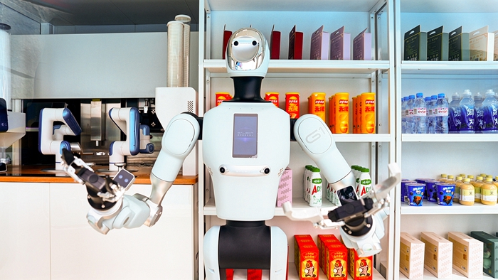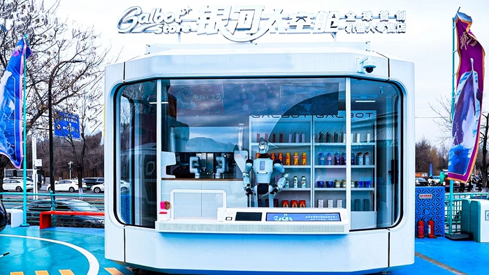 银河太空舱开创性打造“可部署的智能服务单元”全新业态,有效弥补传统零售在时空覆盖上的服务短板。凭借“无遥操、全自主”的稳定运行能力,提供咖啡、茶饮、精选零食及文创周边等多元商品供给,一站式满足游客游览全场景消费需求。舱内搭载的银河通用自研机器人Galbot,依托百亿级具身智能大模型“银河星脑AstraBrain”,具备类人化学习、理解与决策能力,可独立完成揽客迎宾、双语交互、商品推荐、精准抓取、支付交付等全流程运营服务,真正让人工智能从技术展示走向民生实用。游客只需在银河太空舱前端交互屏完成商品选购与扫码支付,机器人Galbot即可自动响应指令,精准取货并完成交付,带来便捷、智能、新潮的消费新体验。