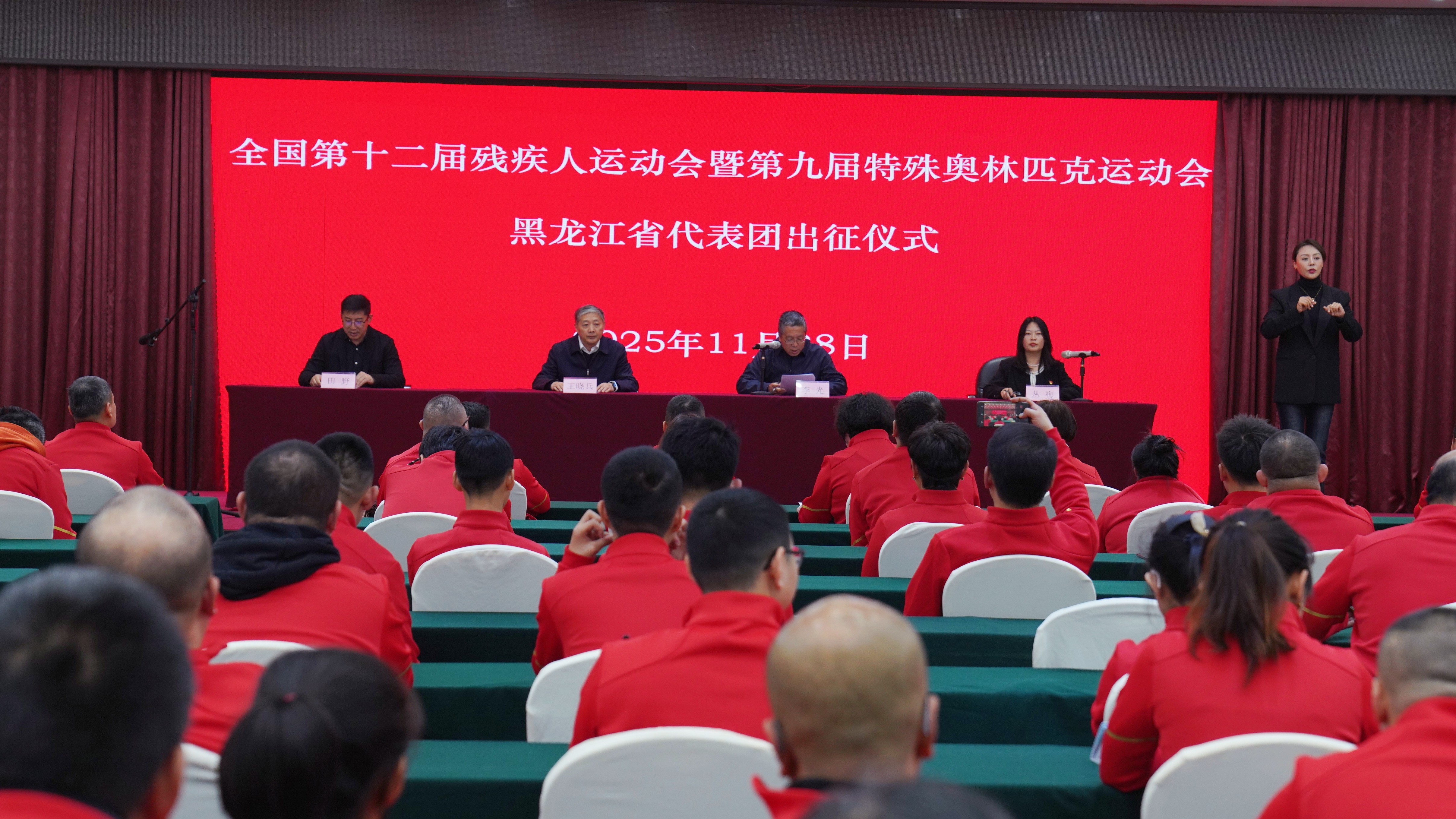2025年11月28日下午,全国第十二届残疾人运动会暨第九届特殊奥林匹克运动会(以下简称“全国残特奥会”)黑龙江省代表团出征仪式在哈尔滨隆重举行。黑龙江省将派出180名运动员,参加下个月在粤港澳大湾区举办的全国残特奥会,角逐23个大项的比赛。
