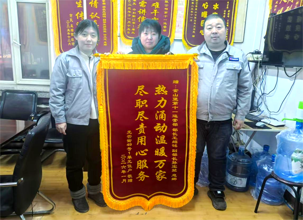 近日,哈尔滨金山堡供热有限公司(以下简称“金山堡公司”)运营部馈赠一面写有“热力涌动温暖万家,尽职尽责用心服务”的锦旗,褒奖工作人员以实际行动破解用热难题,用至臻服务守护百姓温暖的赤诚初心。